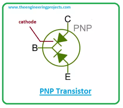 - When two diodes are combined from the cathode side, they constitute a PNP transistor where the N-doped layer represents the base side while the other two p-doped layers represent the emitter and collector respectively.