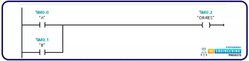Figure 10 depicts the very simple rung of ladder logic that represents OR bitwise operation. It shows two inputs A and B connected in two parallel branches to give the output. So let us simulate that very OR code and apply the cases listed in the truth table in table 3.