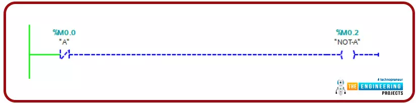 Figure 18 depicts a very simple example of a ladder logic rung that shows the output “NOT-A” is the negate logic of the input A.