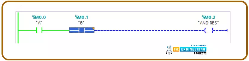 Figure 2 shows our first simple rung that codes the logic of AND bitwise logic. It shows two contacts A and B are connected in series to decide output AND-RES based on AND logic shown in truth table 2. So let us go .simulating this thing we just coded and see the logic in the application.
